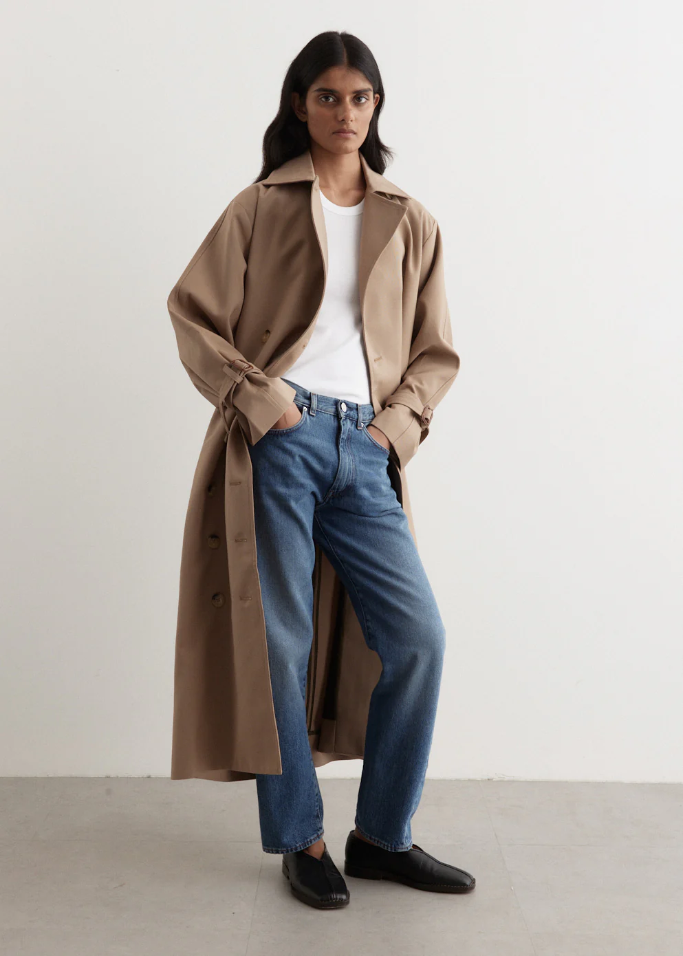 Founded in 2014 by Elin Kling and Karl Lindman, Toteme is a Stockholm-based brand renowned for crafting elevated essentials and timeless wardrobe foundations. A true investment piece, the Signature Trench Coat is a tailored style made from a durable cotton-blend canvas. Designed as a double-breasted silhouette, it has a slightly oversized fit.