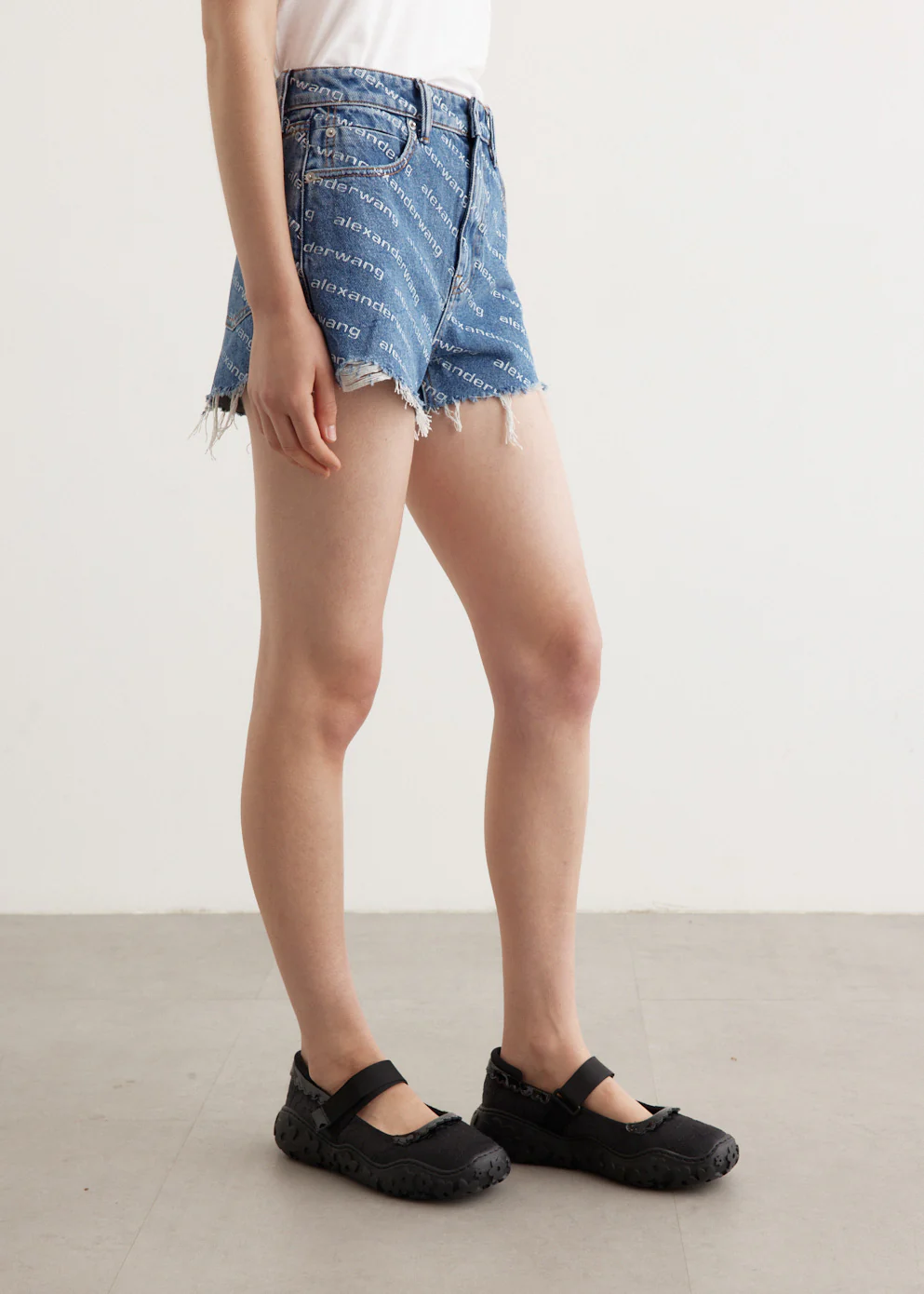 Inspired by elements of New York nightlife and street culture, accessories and apparel from Alexander Wang are instant icons. Adorned with shimmering rhinestone embellishments and branded details, each piece in the collection sparks youthful spirit and urban attitude. The Logo Print Bite Shorts are designed to break in with wear, adopting a unique patina over time. It's adorned with an all-over logo print for a bold, branded finish.
