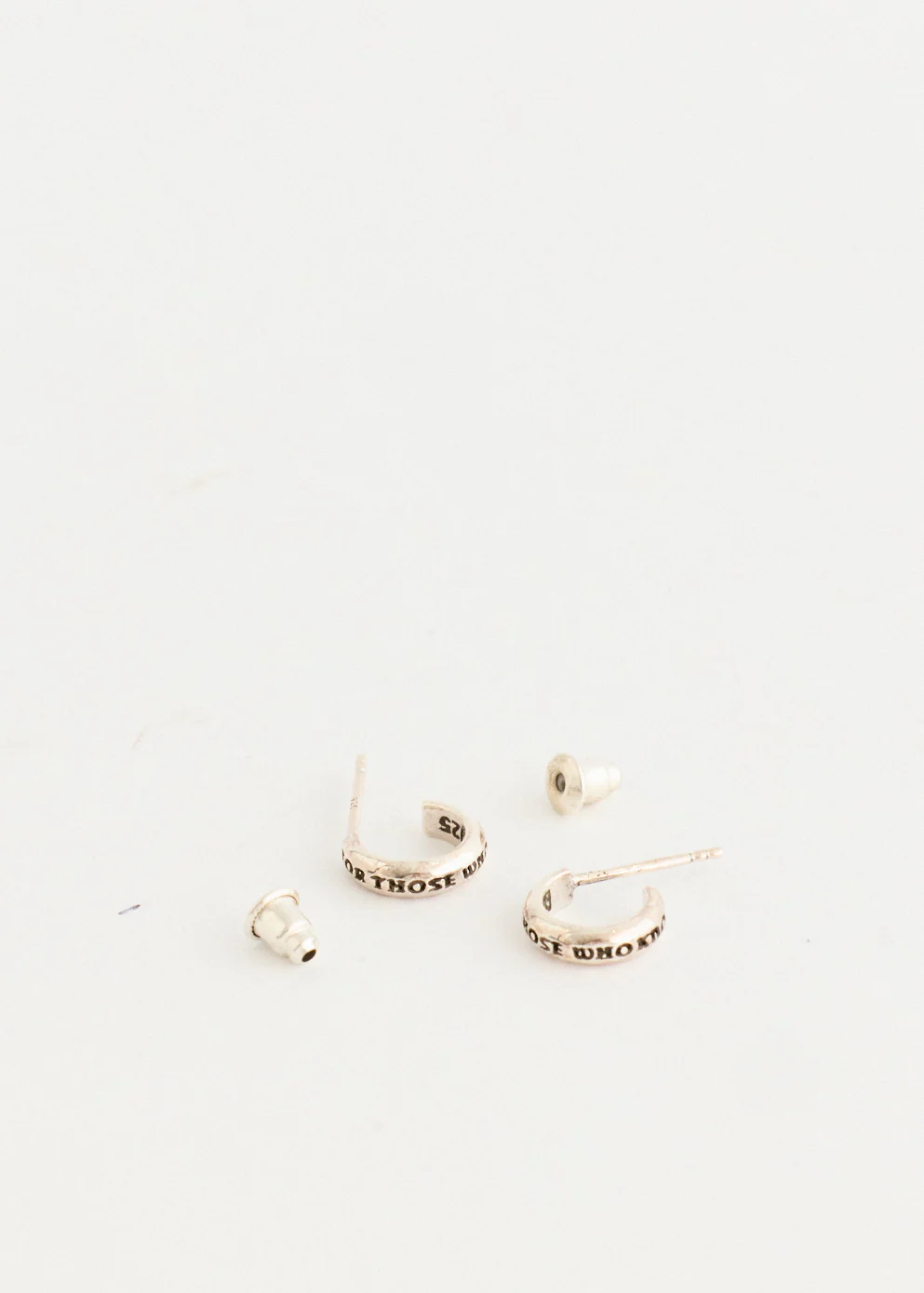 Canada-based jewellery brand Maple, is well-known for its superior quality products and their carefully crafted modern designs. The For Those Who Know Earrings are crafted from solid silver, detailed with a "FOR THOSE WHO KNOW" lettering engraved around the hoop.