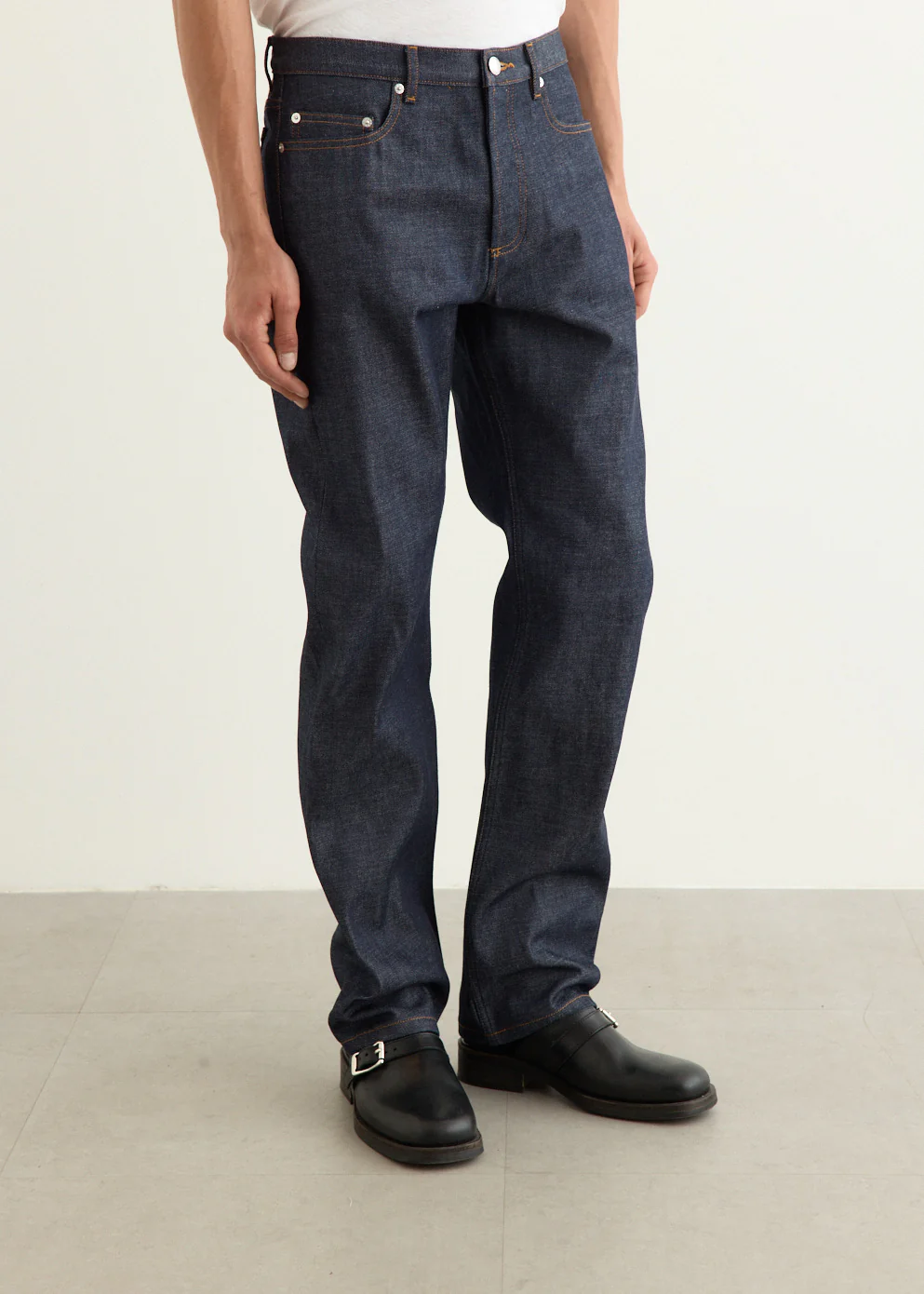 Established in 1987 by fashion designer Jean Touitou, A.P.C. derives from Atelier de Production et de Creation, and is known for its relaxed and minimal approach to design. Crafted from unwashed Japanese selvedge denim, The Standard Jean features a straight-leg silhouette in a stiff fabric designed to soften and shape with wear over time. Pair with a simple T-shirt and sneakers from the label for an understated, everyday look.