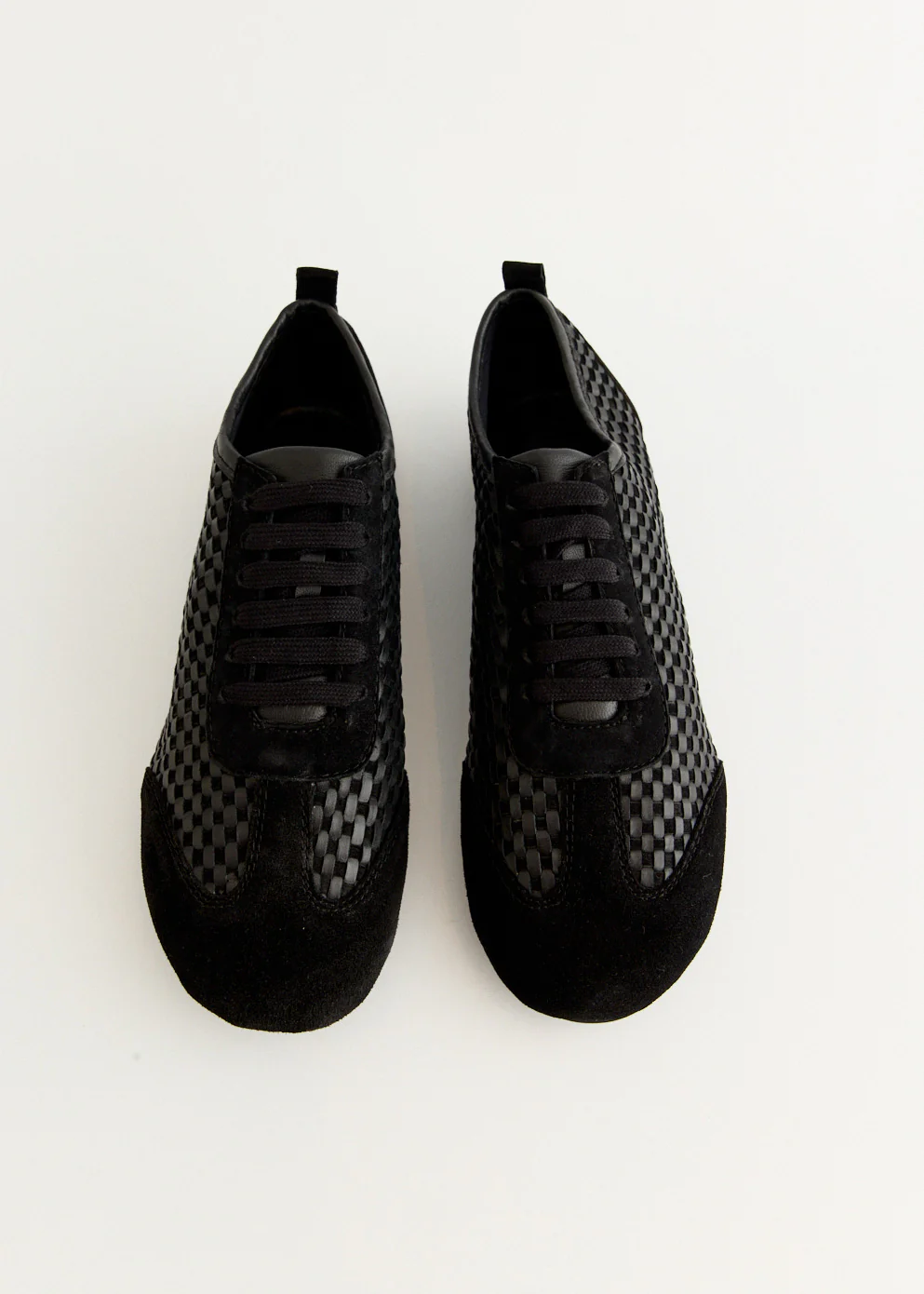 Founded in 2014 by Lara and Matt Fells in Byron Bay, St. Agni is an Australian design studio known for its minimalist aesthetic and refined tailoring. Initially creating handwoven leather accessories, the studio has evolved into premium ready-to-wear, focusing on versatility, longevity, and modern uniforms. The Lattice Weave Ballet Sneaker blends the refined shape of a ballet flat with the comfort of a sneaker. Showcasing a contrasting lattice weave and suede, these sneakers offer an easy, subtle statement for versatile wear.