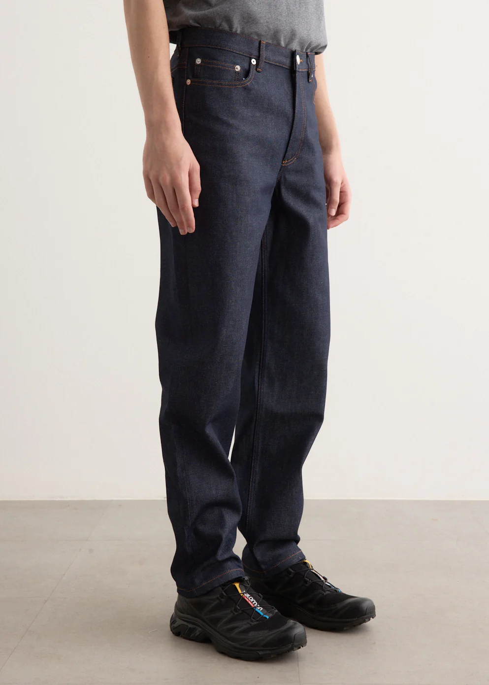 A.P.C. lean on vintage references for the DNA of the Martin Jeans. Crafted in an indigo wash Japanese denim, the high-rise waistline falls into five pocket construction and a straight leg, while caramel top stitching and engraved silver-tone hardware finish the authentic details. Finish the look with leather shoes for a sleek yet classic approach.