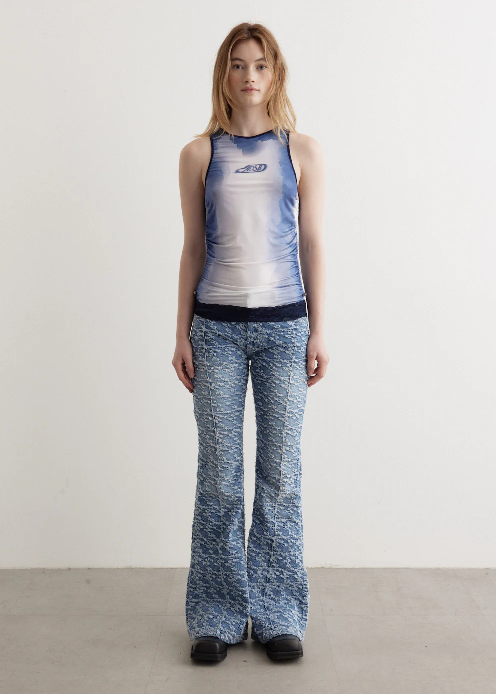 Lisa Watercolour Sprayed Logo Shirring Top